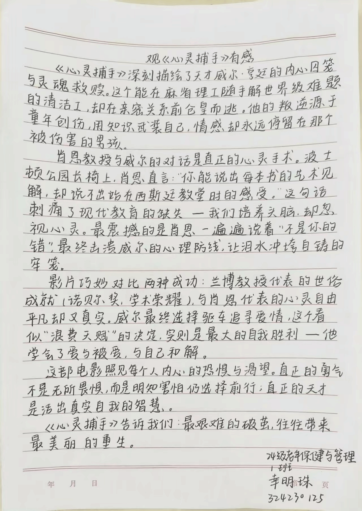 活动现场氛围轻松而温暖,同学们时而专注观影,时而认真记录感悟,在互动交流中彼此启发、共同成长。此次 “心灵影约” 活动的成功举办,不仅为同学们提供了一个放松身心、舒缓压力的平台,更通过电影这一喜闻乐见的形式,将心理健康知识融入其中,帮助大家在沉浸式体验中收获心理成长的力量。