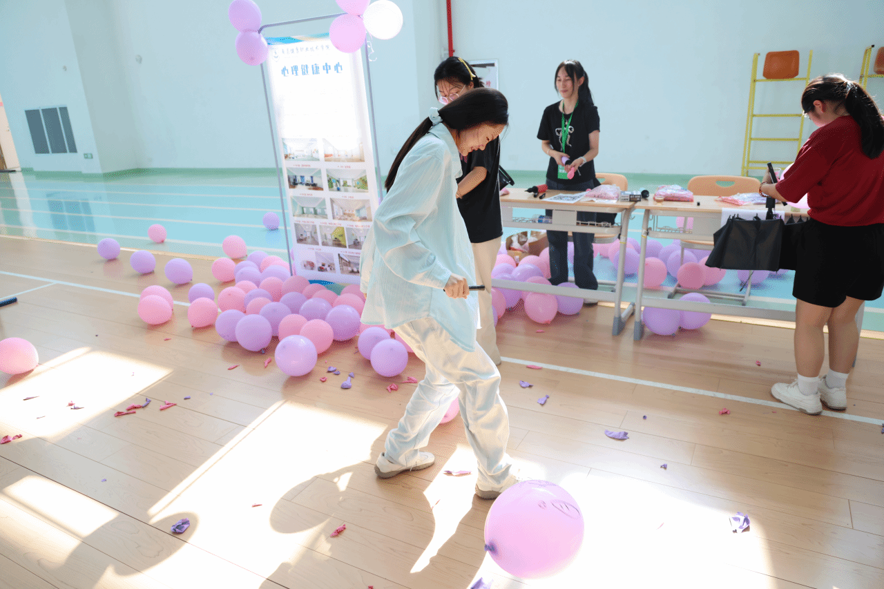 “压力释放屋”中,大家通过将烦恼气球踩爆、呐喊等方式,将学习和生活中的压力尽情释放出来。那此起彼伏的踩爆声和呐喊声,仿佛是对压力的有力宣战,让同学们在瞬间感受到前所未有的轻松与畅快。不少同学表示,在这里,他们找到了释放压力的正确方式,仿佛卸下了沉重的包袱,能够以更加轻松的姿态面对未来的挑战。
