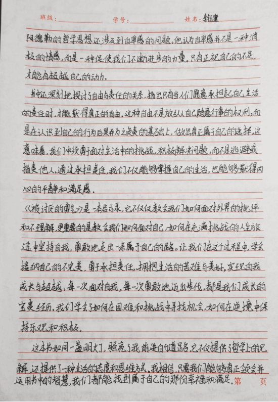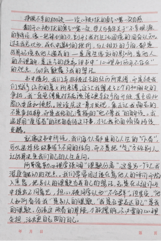 在互动交流环节,同学们纷纷举手分享阅读心得。“以前总因在意同学的看法,不敢坚持自己的选择,读完这本书后,我开始学着聚焦自身成长,不再被他人眼光束缚。”2025级新生李同学的分享道出了不少人的心声。现场同学或结合学业压力、人际相处等实际场景,探讨书中理论的实践方法;或提出阅读中的困惑,与大家共同剖析“如何平衡自我需求与他人期待”。分享者还现场展示了自己的读书笔记,标注的重点语句和感悟批注,让在场同学更直观地感受书籍的思想力量。
