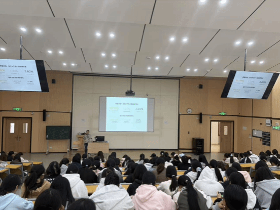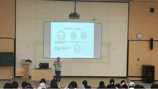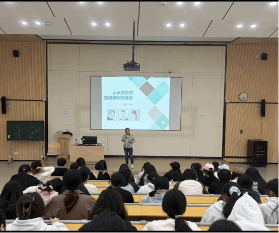 随后,张静老师围绕“焦虑与抑郁情绪的科学认知”展开深度讲解。她先投放了明星遭遇抑郁困扰的相关视频,用大众熟知的案例打破“抑郁离自己很远”的认知,再分享关键数据:当前青年大学生抑郁发生率约20%左右,医学生因学业压力、职业预期等因素,抑郁发病风险略高于普通大学生群体,且抑郁症发病年龄正呈现低龄化趋势,18-24岁是青少年抑郁的高发阶段。针对核心认知误区,张老师明确区分了抑郁与焦虑:抑郁核心是“丧”,表现为持续低落、兴趣减退、动力缺失;焦虑核心是“怕”,源于对未来的不确定、对失败的恐惧、对他人评价的担忧等各种隐性担忧,二者成因不同但可能叠加出现。她进一步拆解:抑郁多与自我价值感低、负面事件累积、神经递质失衡相关,焦虑则常由压力过载、控制欲强、安全感缺失引发,打破了“有焦虑就是心理疾病”“抑郁只是心情不好”等常见误解,强调“焦虑和抑郁是每个人都可能遇到的正常情绪反应,关键在于学会识别信号、科学应对”。