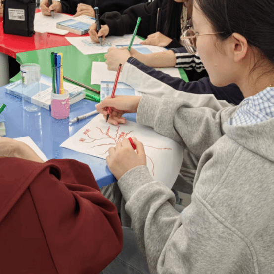 本次读书会特别设置了 “树木画・告别忧虑” 互动环节。同学们用画笔绘制属于自己的 “忧虑树木”,树干代表自己,树枝上画出各种担心的事,比如考试、比赛、未来规划、他人评价等。在心理老师的引导下,大家勇敢分享自己的画作与心声,讲述忧虑给自己带来的影响。随后,同学们用笔轻轻涂掉那些 “2 小时以外、8 公里以外” 的无谓担忧,象征放下心理负担。最后,大家在树枝空白处画上当下能做的小事,把注意力重新拉回眼前,学会把握能控制的事情。