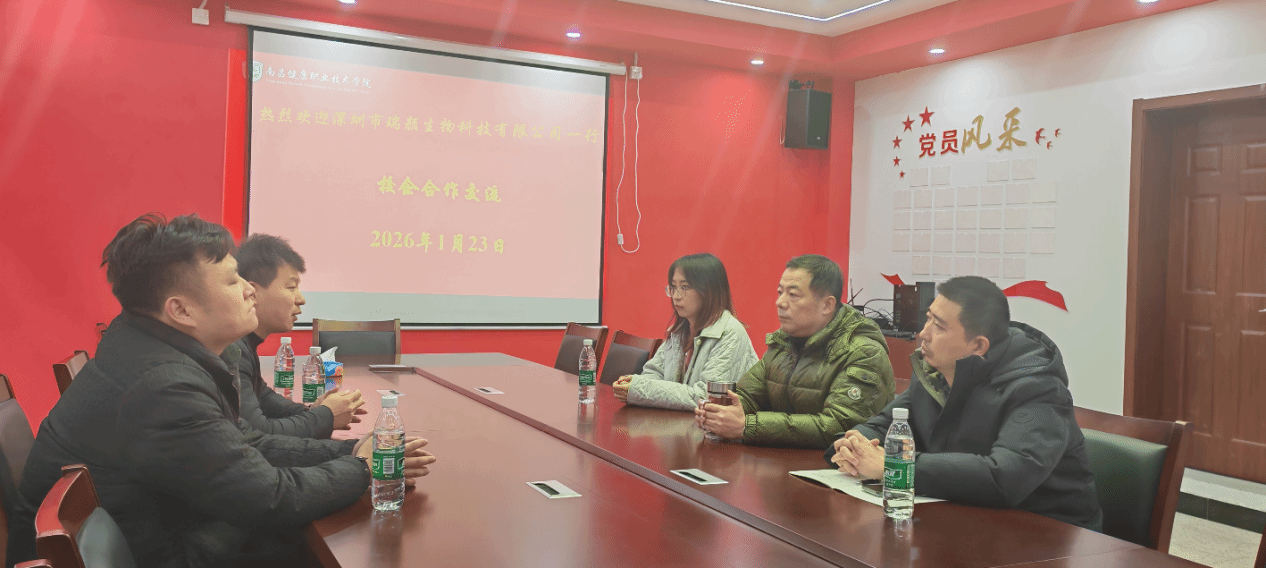 为深化产教融合,推进校企协同育人,2026年1月23日,深圳市瑞颜生物科技有限公司总经理彭礼洋、大湾区区域经理李政一行来访我校东湖校区,与实习就业科、医学技术系相关负责人开展校企合作洽谈。双方围绕人才培养、企业实训、实习就业等议题深入交换意见,共同探索校企合作新机制。