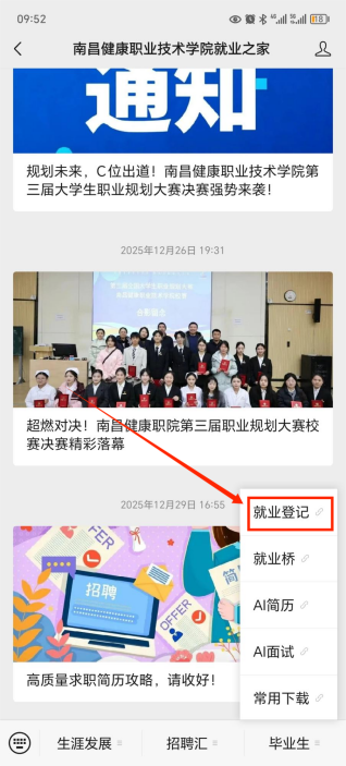 手机端:关注“南昌健康职业技术学院就业之家”,点击“就业登记”直接登记。