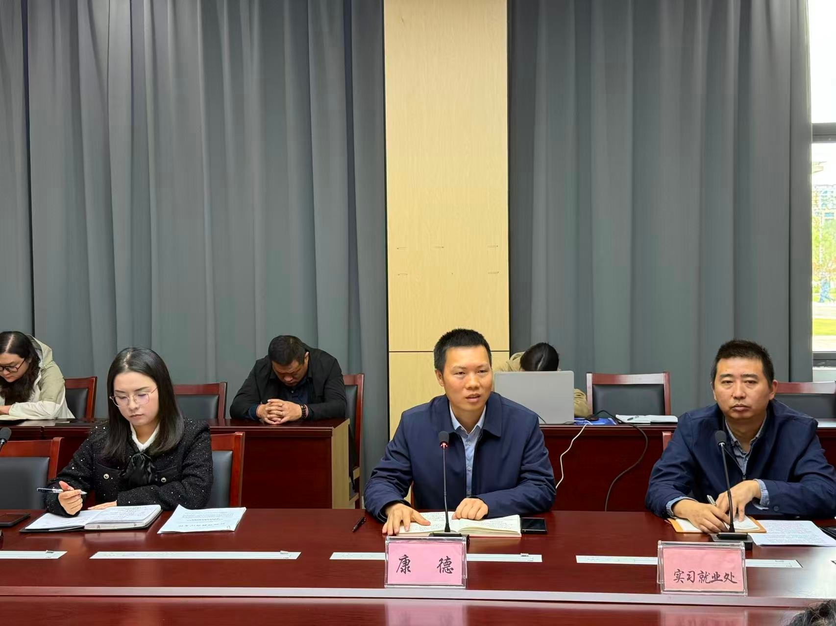 为深入贯彻落实党中央、国务院关于高校毕业生就业工作的决策部署,系统推进2026年实习工作有序、高效开展,10月21日上午,我校在行政楼会议室隆重召开2026年实习工作部署会。会议由实习就业处负责人主持,党委委员、副院长康德出席并作重要讲话。各教学系主任、书记,相关职能部门负责人,实习与就业专干,全体毕业班辅导员及实习就业处工作人员共同参会。