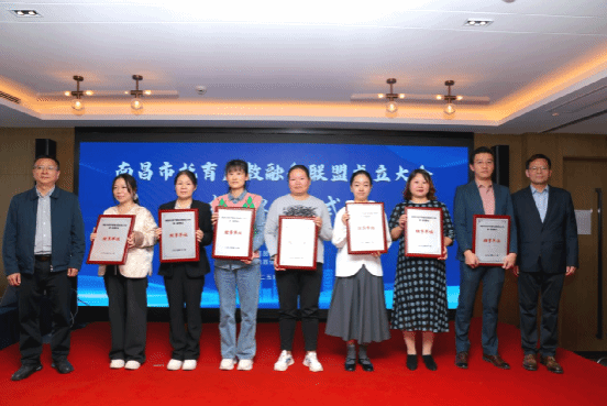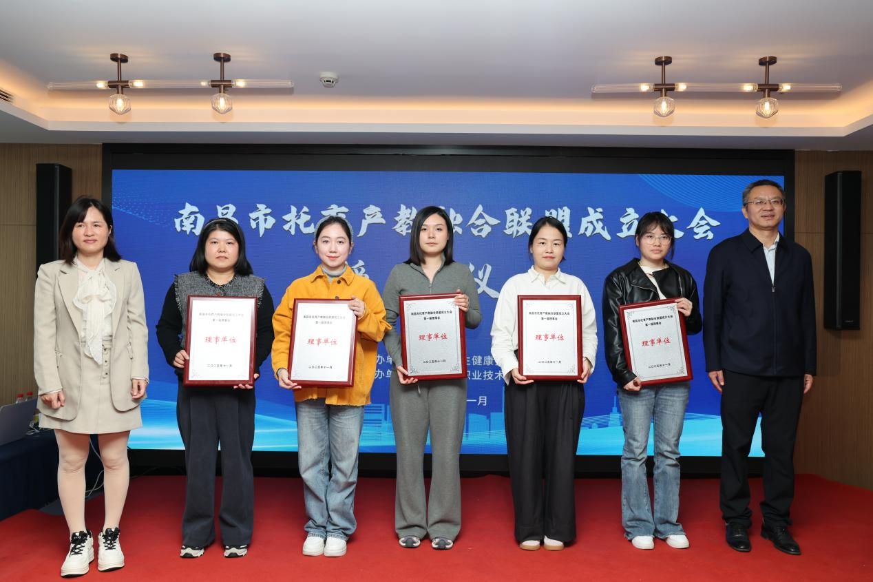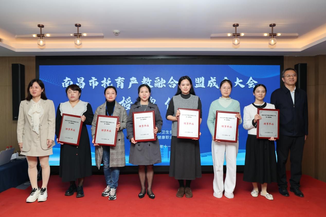 会议现场,审议通过了南昌市托育产教融合联盟章程、选举办法、建设方案,选举产生联盟第一届理事会成员。南昌健康职业技术学院领导及联盟副理事长单位代表登台发言,聚焦托育人才共育、校企协同创新等内容进行了深入交流,凝聚了“共建共享、赋能托育产业”共识。本次会议还举行了隆重的联盟成立揭牌仪式与成员单位授牌仪式,这标志托育产教融合新载体落地,开启健康产业与托育产业深度联动新篇章。
