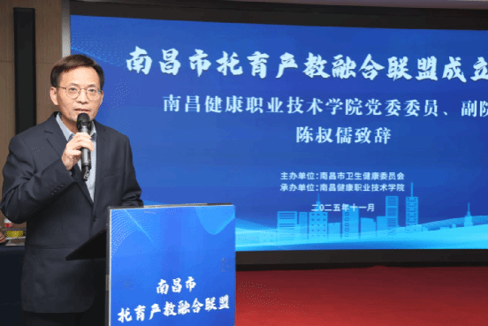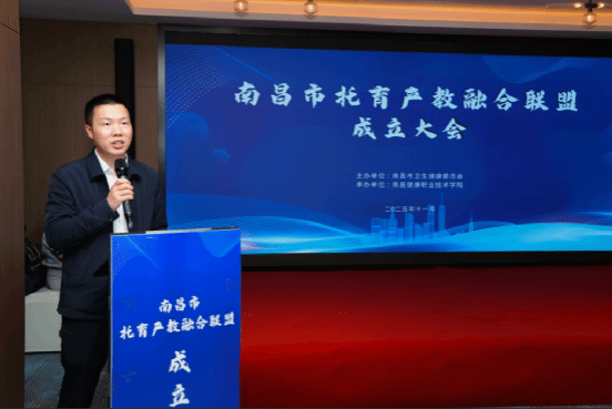 为深入贯彻党的二十届三中全会精神,持续落实中共中央办公厅、国务院办公厅《关于深化现代职业教育体系建设改革的意见》要求,进一步深化产教融合、强化协同育人机制,全面提升服务南昌民生福祉的效能。2025年11月7日,南昌市托育产教融合联盟成立大会暨第一届理事会全体会议在南昌市红谷滩希尔顿欢朋酒店顺利举行。南昌市卫生健康委副主任胡志娟、四级调研员姚敏、人口家庭科科长彭伟平,南昌健康职业技术学院党委书记、院长黄俭,党委委员、纪委书记卢涛,党委委员、副院长陈叔儒,党委委员、副院长康德及50余名理事会成员代表出席会议,学院实习就业处联合继续教育(培训)中心、护理系共同组织。
