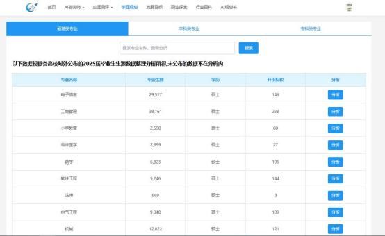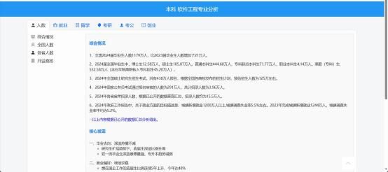 (2)系统对所选专业在【人数】、【就业】、【考公】、【创业】、 【专升本】等方向进行详细的分析展示