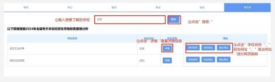 (1)输入学校名称点击【搜索】,系统查询出对应学校,点击【详情】