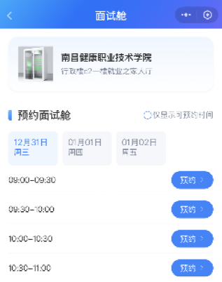 进入预约面试舱界面,在该界面中,学生可以根据自己的安排挑选面试舱进行预约。