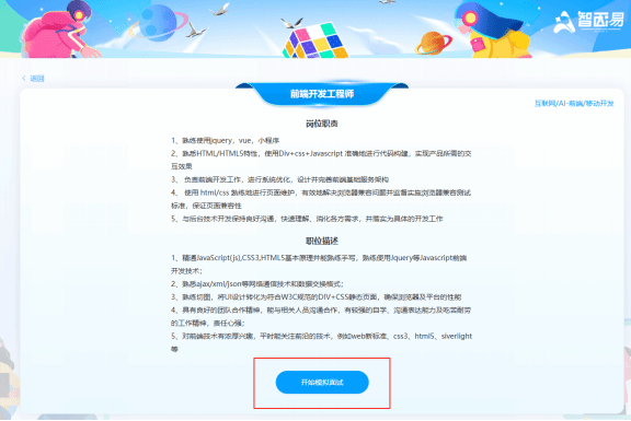 查看选择的岗位相应的职责和描述后,开始模拟面试