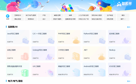 登录完成后,即可搜索或直接选择意向岗位