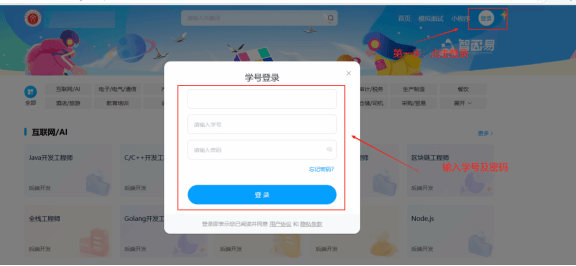 点击桌面面试软件,进入登录页面,在【登录】界面输入账号密码进行登录