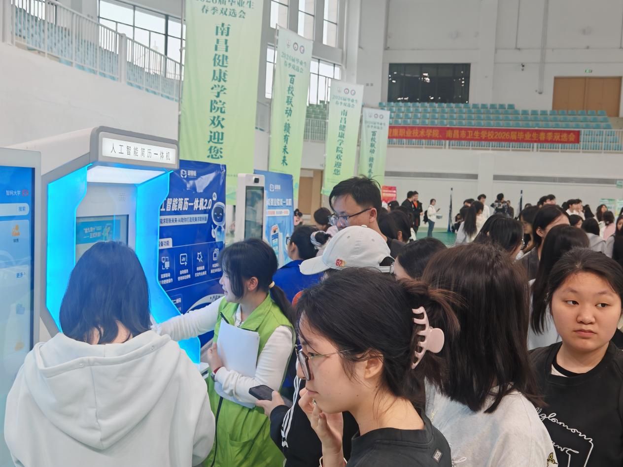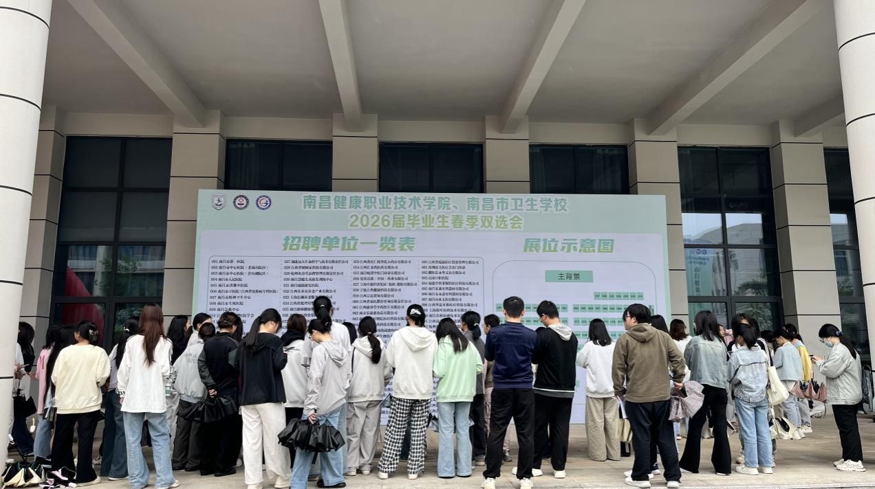 2026年4月13日,南昌健康职业技术学院、南昌市卫生学校2026年春季校园双选会在九龙湖校区体育馆隆重举行。本次活动共邀请省内外107家用人单位参会,涵盖多家市属公立医院及来自上海、深圳、杭州等地的大型医药企业,提供就业岗位2700余个,吸引校内2800余名学生参会。