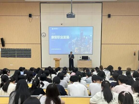 曾小娟则聚焦"康复职业的发展",从康复医学服务的人群入手,分析了当前先进的康复需求和发展趋势。她系统梳理了康复专业多个就业方向,涵盖综合医院康复科、社区康养驿站等多元场景。重点解析行业证书考取梯度与核心技能养成路径,以南昌健源康复医院"医康护一体化"服务模式为例,为新生绘制"见习-专精-管理"的职业进阶图谱。