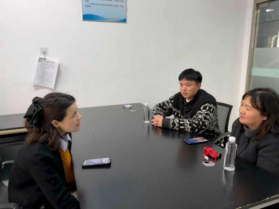 随后,走访团队前往江西怡和医药有限公司考察,系党支部书记与公司人事经理赵丽清开展座谈,重点围绕访企拓岗、实习合作等核心内容进行沟通,赵丽清经理介绍了公司岗位需求、实习岗位标准及员工培养计划,双方就学生实习安排、就业输送渠道等方面达成多项共识,为后续共建实习就业基地奠定坚实基础。
