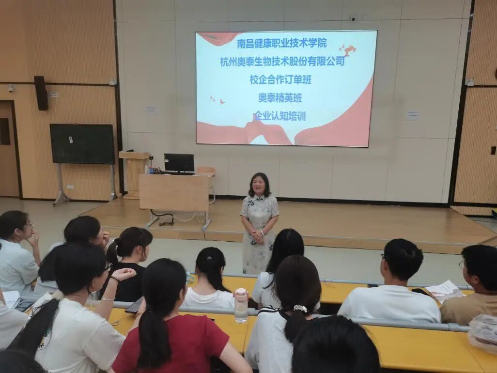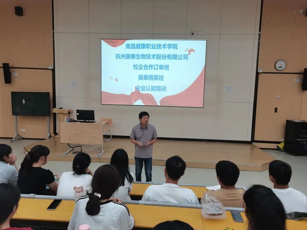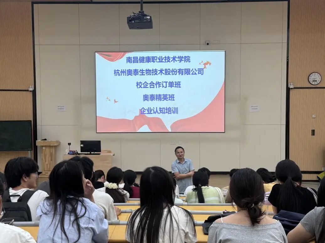 “校企协同添助力,知行合一育良才;匠心深耕医药路,青春逐梦向未来。”为深化产教融合、促进校企资源优势互补,帮助学生提前了解行业动态与企业需求,近日,南昌健康职业技术学院食品药品系药学、中药学两个专业近百名学生,参与了学校与杭州奥泰生物技术股份有限公司校企合作订单班“奥泰精英班”企业认知培训。本次培训以“搭建认知桥梁、明晰职业方向”为核心,通过多方交流互动,为学生们铺就了从校园走向企业的衔接之路。