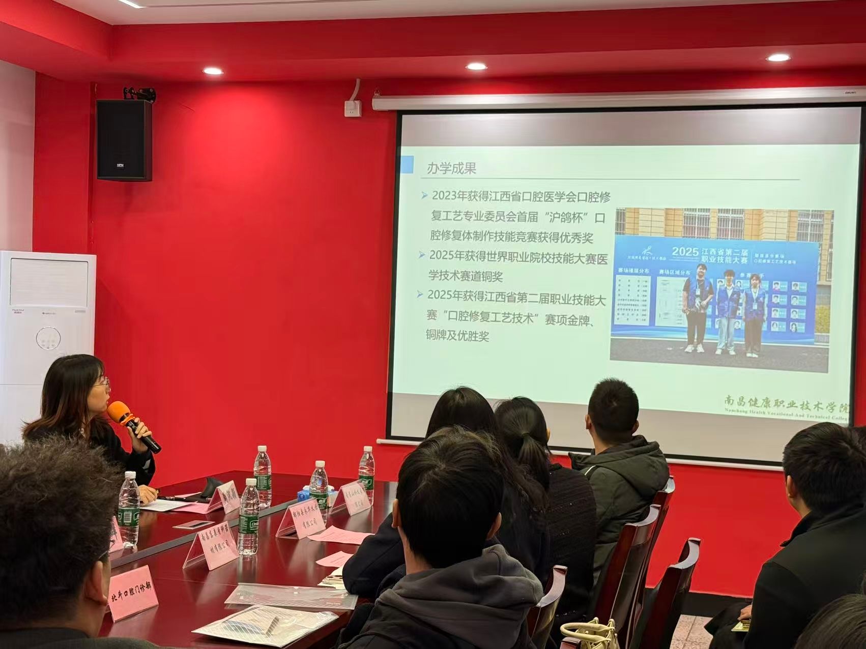 研讨会伊始,医学技术系负责人率先开场,简要介绍了学校的办学理念、系部专业建设成果、毕业生规模及人才培养特色,强调了此次活动对促进校企资源共享、助力学生高质量就业与实习的重要意义。随后,医学技术系教学办主任围绕口腔医学技术专业人才培养方案进行汇报,详细介绍了口腔医学技术专业办学成果、教学目标及课程实训项目的设置情况,为后续校企讨论奠定基础。