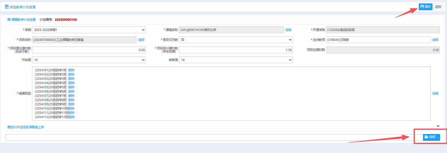 实验实训教学准备表与计划同时提交流程