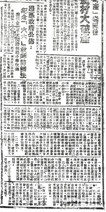 1942年5月16日《晋察冀日报》刊发《边区政府公布:纪念“六六”教师节办法》 中央档案馆馆藏