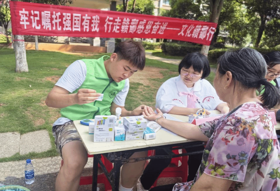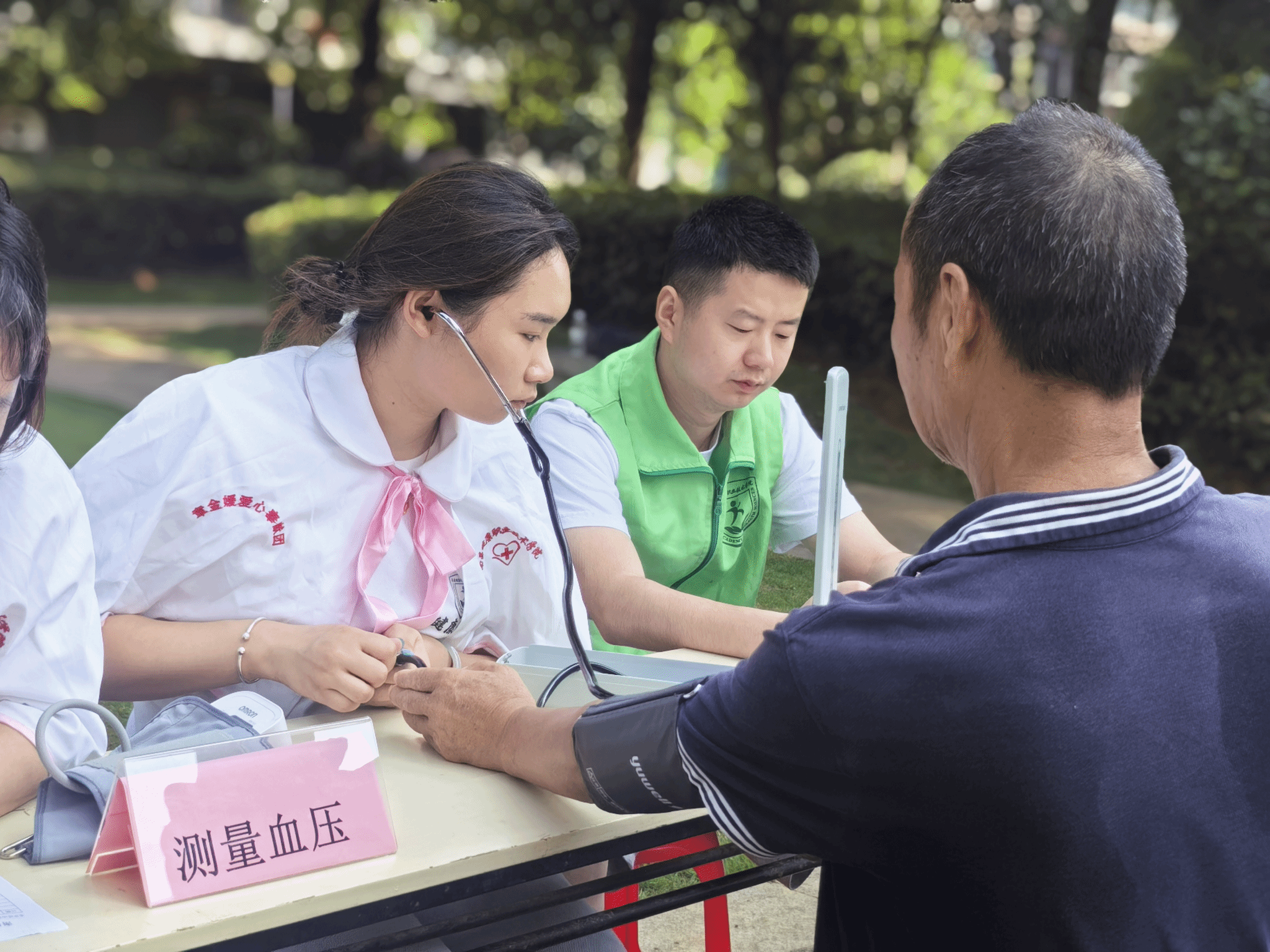 活动现场,实践队员们引导居民有序排队,依次为大家进行血压、血糖、尿酸等健康指标检测。每完成一项检测,队员们都会耐心解读数据,并结合居民个人情况给出针对性健康建议;对于患有高血压、糖尿病等慢性病的居民,还特别提醒他们按时服药、保持健康生活方式。