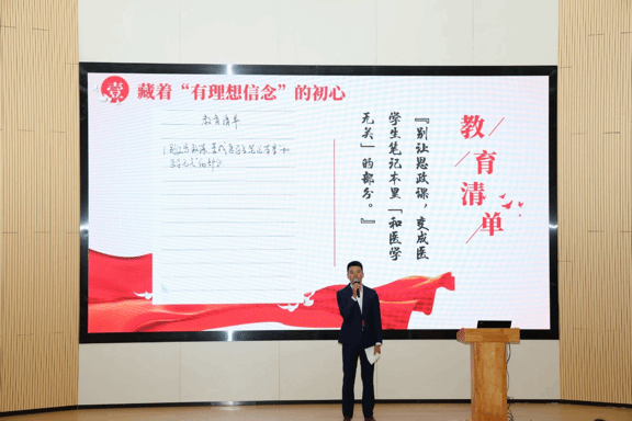 廖汝清老师以“三尺讲台育初心 思政育人担强国”为题,分享自身求学入职的成长经历,引领学生成长成才、筑牢信仰之基的感悟体会,充分展现了思政课教师立德树人、铸魂育人的责任担当。