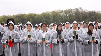 随后,校团委负责人沈凤宣读新团员名单,标志着一批优秀青年正式加入中国共产主义青年团。团委老师为新团员代表佩戴团徽,一枚枚闪亮的团徽,既是青春的荣誉,更是时代的责任。在领誓人金可欣的带领下,全体新团员面向烈士纪念碑庄严宣誓,铮铮誓言在陵园上空久久回荡,彰显着新时代青年紧跟党走、勇担使命的坚定信念。