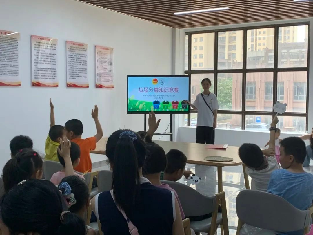 7月6日,暑期社会实践活动的最后一天,南昌健康职业技术学院健康青年志愿服务队、青马工程大学生骨干社会实践队师生20余人前往明月山社区为儿童开展防溺水、交通安全、反诈与垃圾分类等内容的宣讲活动,以案例讲解与知识科普传递安全环保理念。