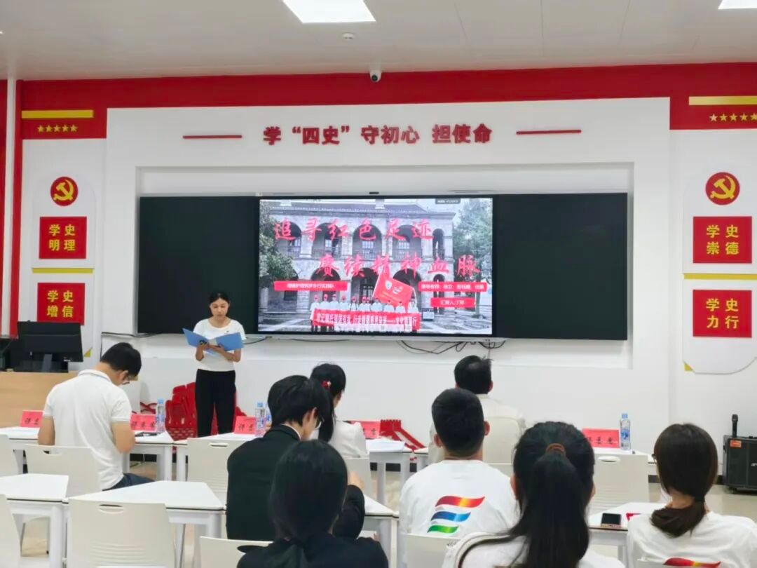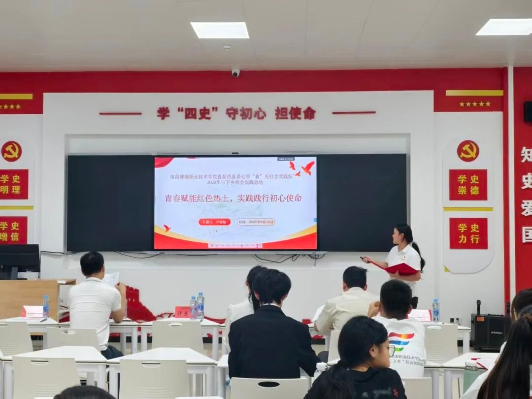 护理系“南健护理 筑梦乡行”志愿服务队代表成员丁琴汇报:“新中国成立76周年之际,实践队赴南昌,走访方志敏纪念馆、小平小道陈列馆等红色场馆,感悟革命先辈的信仰力量、探索精神与奉献品质。经思想淬炼,我们决心做红色基因传承者、理想信念坚守者、实干奋斗践行者,以青春之力助力民族复兴。”