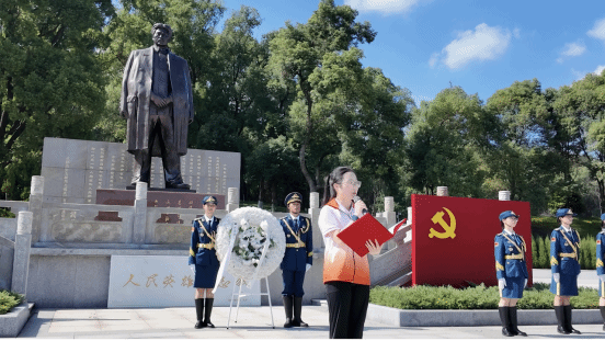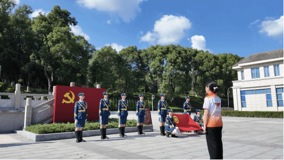 国旗护卫队成员迈着整齐的步伐,向英烈敬献花圈,以庄重之礼寄托对先烈的缅怀之情。花圈摆放完毕后,全体人员低头默哀,在肃穆的静默中,共同追忆方志敏革命先烈的英勇事迹,深切感受他们为国捐躯的崇高气节与家国情怀。