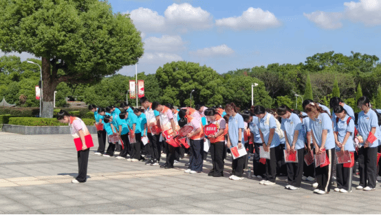 活动伊始,全体人员肃立,激昂嘹亮的团歌旋律随之响起,大家齐声高唱,歌声在纪念园内久久回荡。