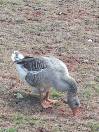 羽毛灰黑带斑纹,白腹显眼,橙红大脚迈开,正行走于草地。最爱在草地里踱步,这里啄啄那里找找,走起路来大摇大摆。