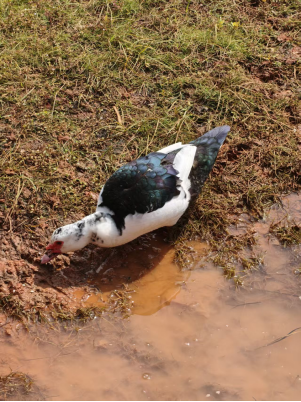 黑白羽色搭配,带绿色金属光泽,在泥泞水域边游玩,哪怕泥水溅到身上也毫不在意,觅食时脑袋一点一点的。