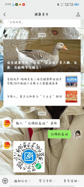 2.公众号路径:戳“健康青年”→点“青年活动”→找“学生反馈中心”→搜“白鸽权益站”,隐藏入口也能轻松解锁~