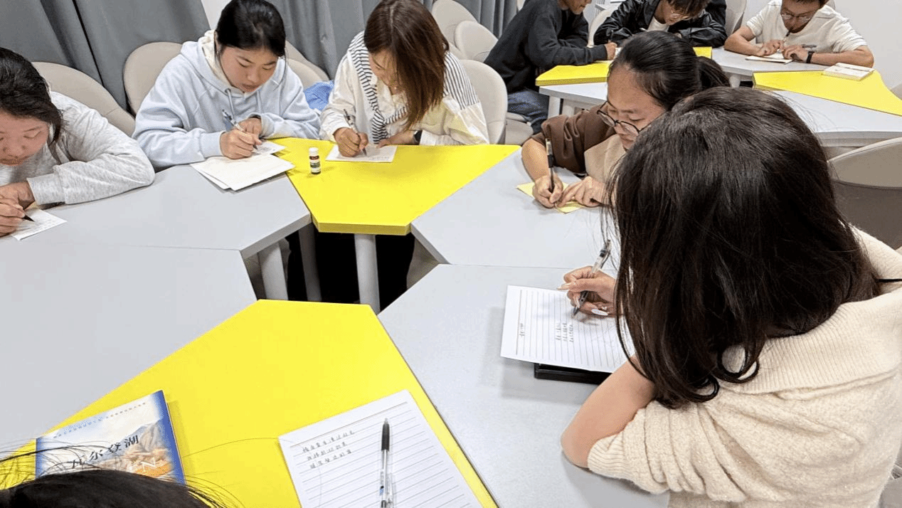 “笔墨创作会”环节将活动推向高潮。在悠扬的音乐中,同学们潜心构思,在一方方便签上写下真挚的“三行家书”。朴素的文字承载着对长辈的深厚情感,部分同学在分享创作心得时,动情地讲述了与长辈相处的温馨往事,真挚的情感感染了在场每一位同学。