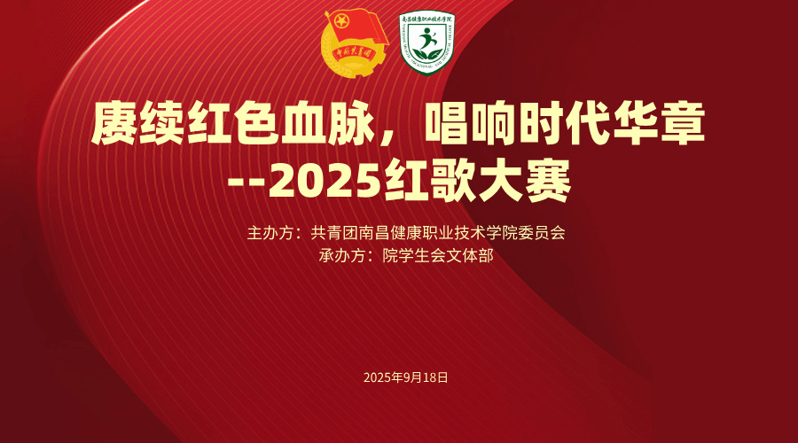 为铭记“九一八”事变历史,传承红色革命精神,厚植学生爱国情怀,9月18日,校团委在南昌健康职业技术学院九龙湖校区图书馆2楼报告厅举办“赓续红色血脉,唱响时代华章”红歌比赛。本次比赛以班级为单位,经系部严格筛选,共推送 14 组参赛队伍,他们用嘹亮的歌声回望峥嵘岁月,用赤诚的情怀抒发爱国之志。