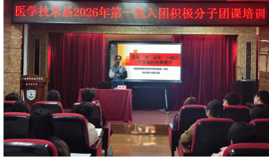 为加强对入团积极分子思想引领,推动团史学习教育走深走实,引导青年学子坚定理想信念、勇担时代使命,近日,医学技术系团总支在东湖校区组织2026年第一批入团积极分子开展团课培训,共46名同学参与。8学时主题鲜明、内容深刻的课程,为青年学子注入青春奋进力量。