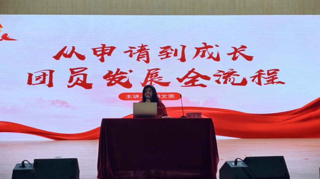 校团委组织委员胡文莞详细讲解团员发展工作的规范流程,依据《中国共产主义青年团发展团员工作细则》,系统介绍入团申请、组织考察、团课学习、宣誓等环节,明确标准与程序,并就常见问题答疑,引导学员端正入团动机,以严格标准要求自己,在实践中锤炼品格、增长才干。