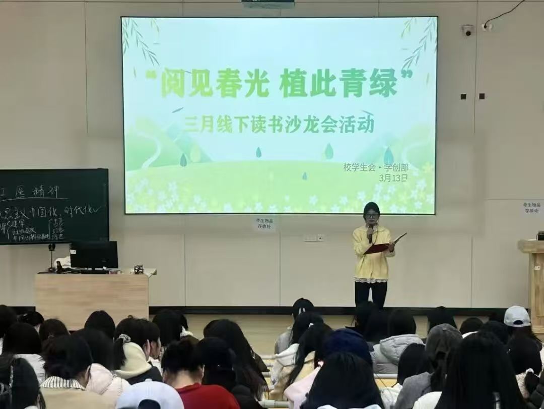 为营造春日沉浸式阅读氛围,传递绿色环保理念,3月13日,校学生会学创部于教12-107开展“阅见春光,植此青绿”三月线下读书沙龙会,全校学子踊跃参与,共赴一场春日阅读与环保理念交融的思想之约。本次读书沙龙以春为媒、以书为桥,紧扣自然环保与生命主题,引导同学们感受自然之美、领悟生态意义。