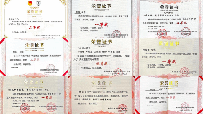深耕笃行结硕果,青春建功绽芳华。在支部的精心培育和团员的奋勇拼搏下,24级护理6班团支部涌现出一大批品学兼优、勇于担当的青年榜样。多名团员斩获校级比赛一、二等奖,在竞赛中崭露头角;5名团员获评校级“优秀学生干部”2名“三好学生”荣誉称号,6名团员凭借突出的志愿服务表现入选校园“优秀志愿者”,一张张亮眼的成绩单,不仅是对全体团员奋进姿态的肯定,更彰显着这个充满活力的集体昂扬向上的精神风貌。