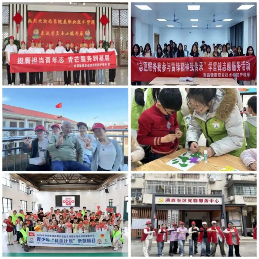 实践创新赋能,锤炼青春本领。团支部立足专业特色与时代需求,搭建多元化实践平台。组织团员将理论知识转化为实践能力;辅导员在暑期三下乡带领支部5名团员其中团员邓雨珊为队长,带领“青芒健康实践队”这支队伍走进江西九江市湖口县流芳村社会实践地只,实践团队获评护理系“优秀志愿团队”,支部成员紧跟导员步伐在校园、社区、农村、医院等等积极参与各类志愿活动,累计服务人数超3600人,这一系列志愿服务活动,让团员在实践中锤炼品格、增长才干。