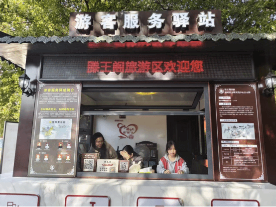 南昌地标滕王阁景区内,2024级口技1班团支部的团员们也是常客。他们身披志愿服务绶带,穿梭在往来游客中:或耐心指引游览路线,解答“最佳拍照点在哪”“卫生间怎么走”等疑问;或凭借提前备好的讲解词,向驻足的游客介绍滕王阁的历史沿革与建筑特色;或在人流密集处轻声提醒“注意脚下”“有序排队”,默默维护着景区秩序。