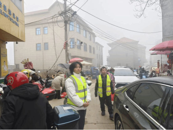 日常工作中,更常见的是琐碎而必要的秩序维护。由于停车空间有限,电动车、自行车的不当停放常常引发连锁困扰。于是,在劝导交通之余,我成了“流动的秩序员”,一次次俯身扶正、挪移车辆,为后来者留出通道。那些得到帮助的市民投来的感谢目光和简单致意,成为寒冬里最温暖的回馈。这让我明白,志愿服务的精神往往体现在这些看似微小的“举手之劳”中——每一次主动的整理,都是在为公共空间的和谐贡献一份力量。