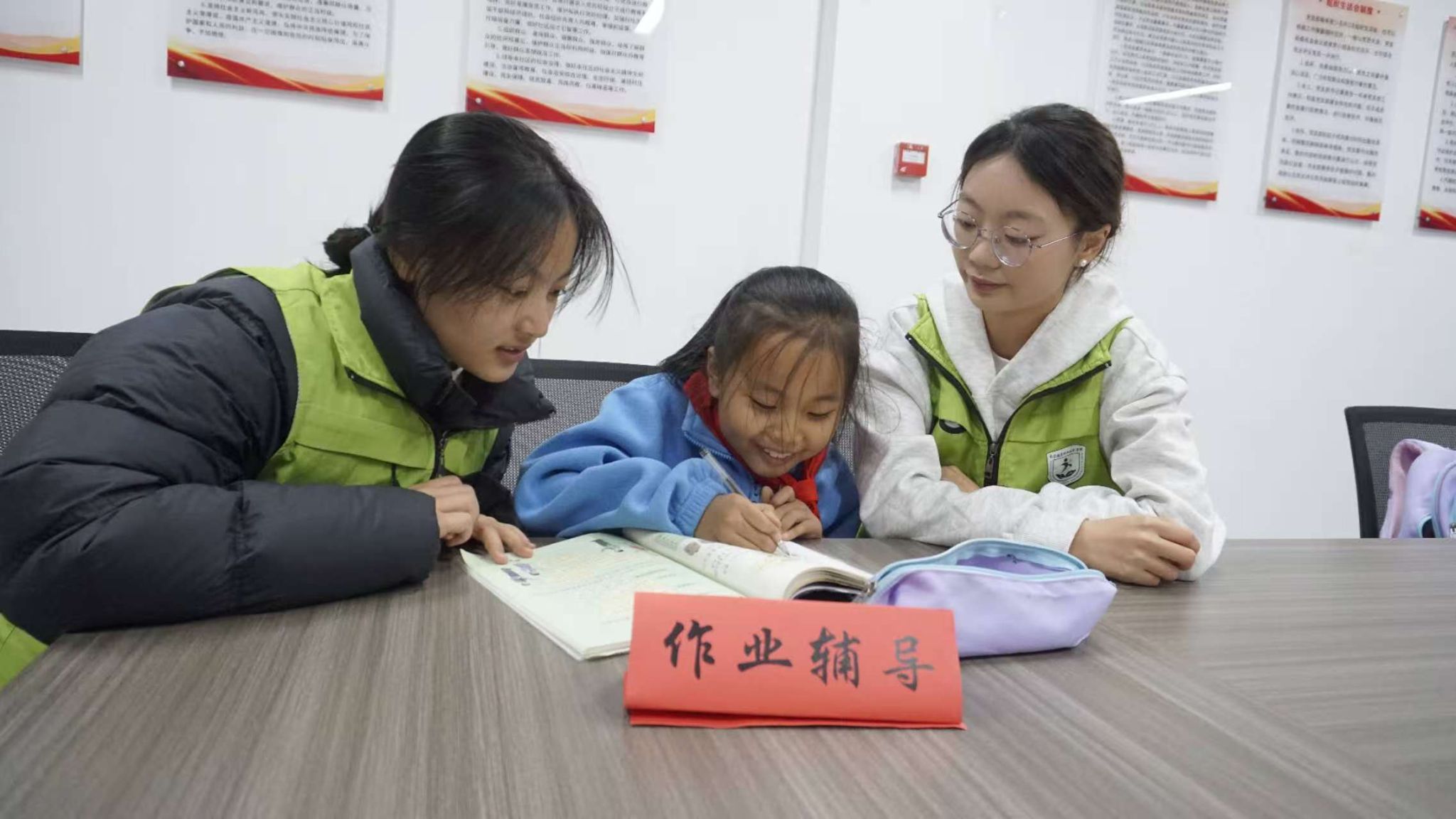 童心伴学活动中,志愿者耐心陪伴每一位小朋友,用鼓励启发思考,以示范传授方法,帮助孩子整理错题、规划时间、养成良好学习习惯。面对难题,志愿者细致讲解,直到孩子豁然开朗、笑容绽放。在志愿者的辅导下,孩子们高效完成作业,脸上写满收获的喜悦。活动结束时,孩子们依依不舍地拉着志愿者的衣角问:“明天还来吗?”这纯真的追问,满含对陪伴的珍视与期待。