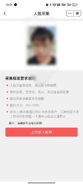 3、人脸采集:进入易校园首页,点击人脸采集,点击上传新人脸照采集人脸。