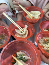 品鉴环节更是大型“真香现场”。刚出锅的饺子冒着热气,大家端着盘子围坐一圈,尝着自己亲手包的饺子,鲜香的肉馅、清爽的素菜馅在舌尖交融,温暖直达心底。公益打包环节中,小伙伴们细心分装剩余饺子,将这份烟火温情传递出去,用实际行动践行节约理念、扛起责任担当。
