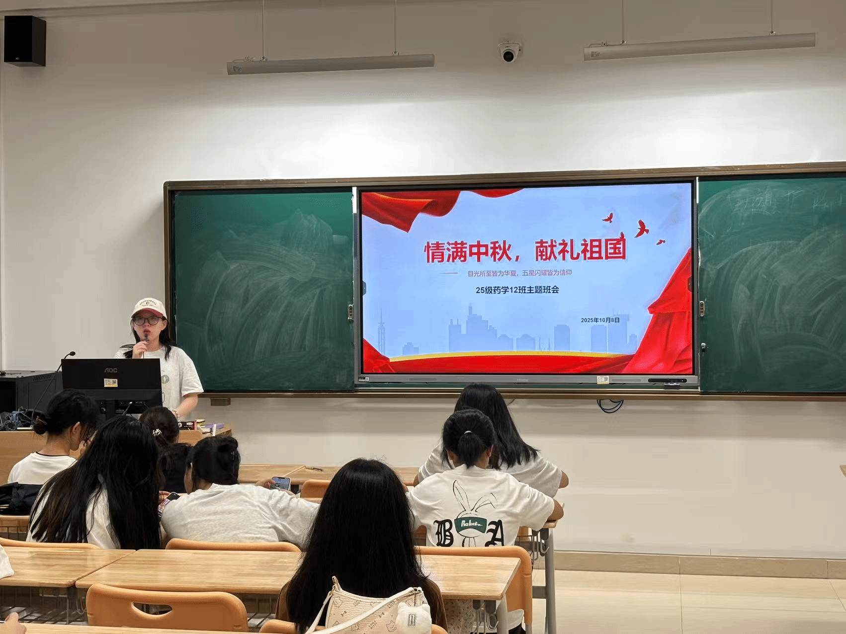 2025级药学12班辅导员梅殷珑从双节的文化溯源出发,围绕“国庆—山河锦绣迎国庆,中秋—千年团圆的文化印记”两条主线,引导学生深入理解节日内涵,并将个人理想与国家发展紧密相连。