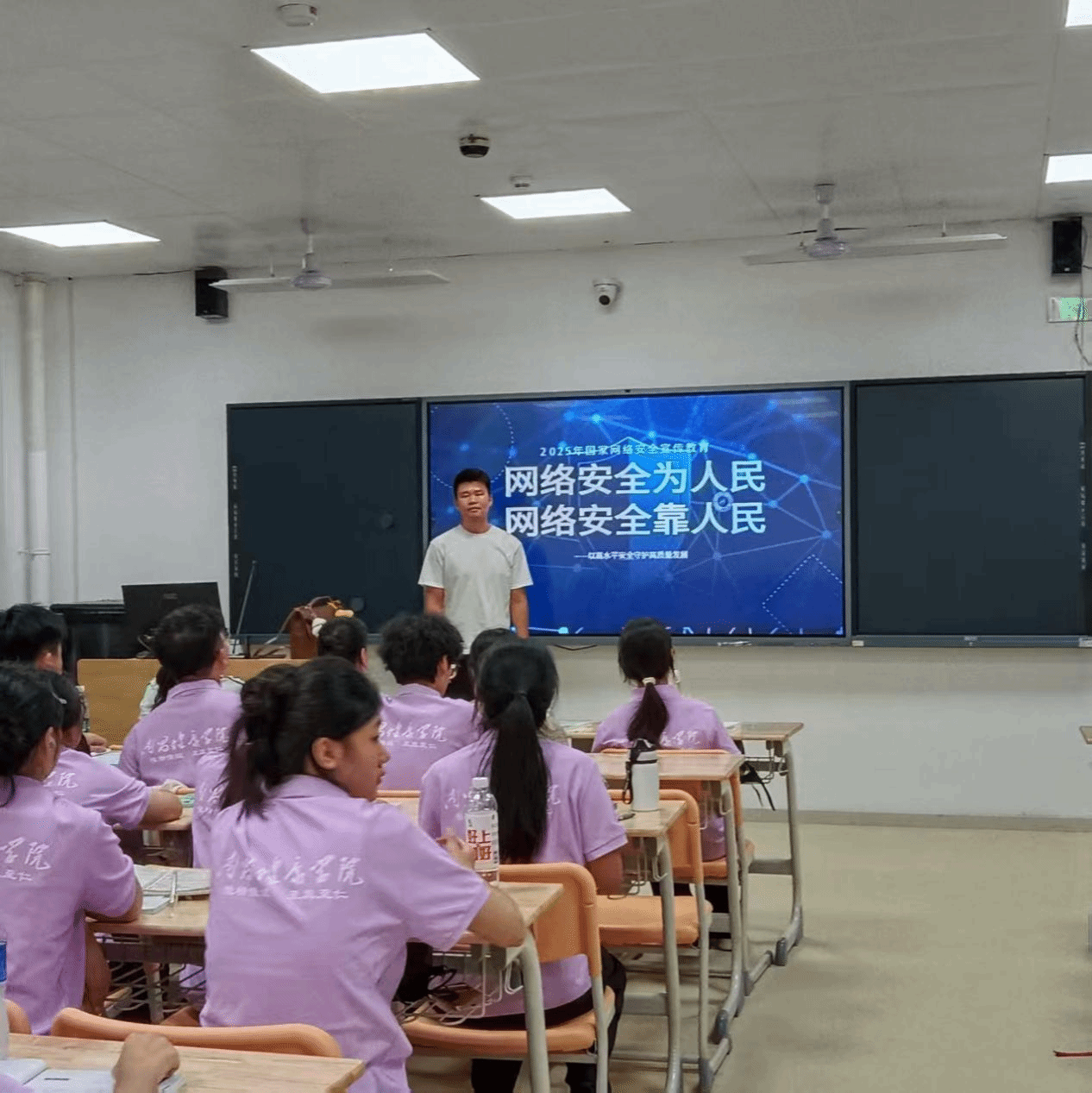 2025级医美1班辅导员胡欣怡结合近期真实案例,指出大学生作为网络高频使用群体,极易成为网络攻击目标。她重点解析了“网络钓鱼”“信息泄露”“恶意软件”“网络谣言”等常见风险,讲解识别方法与应对策略,并强调强化密码、规范言行、定期备份等防护要点。