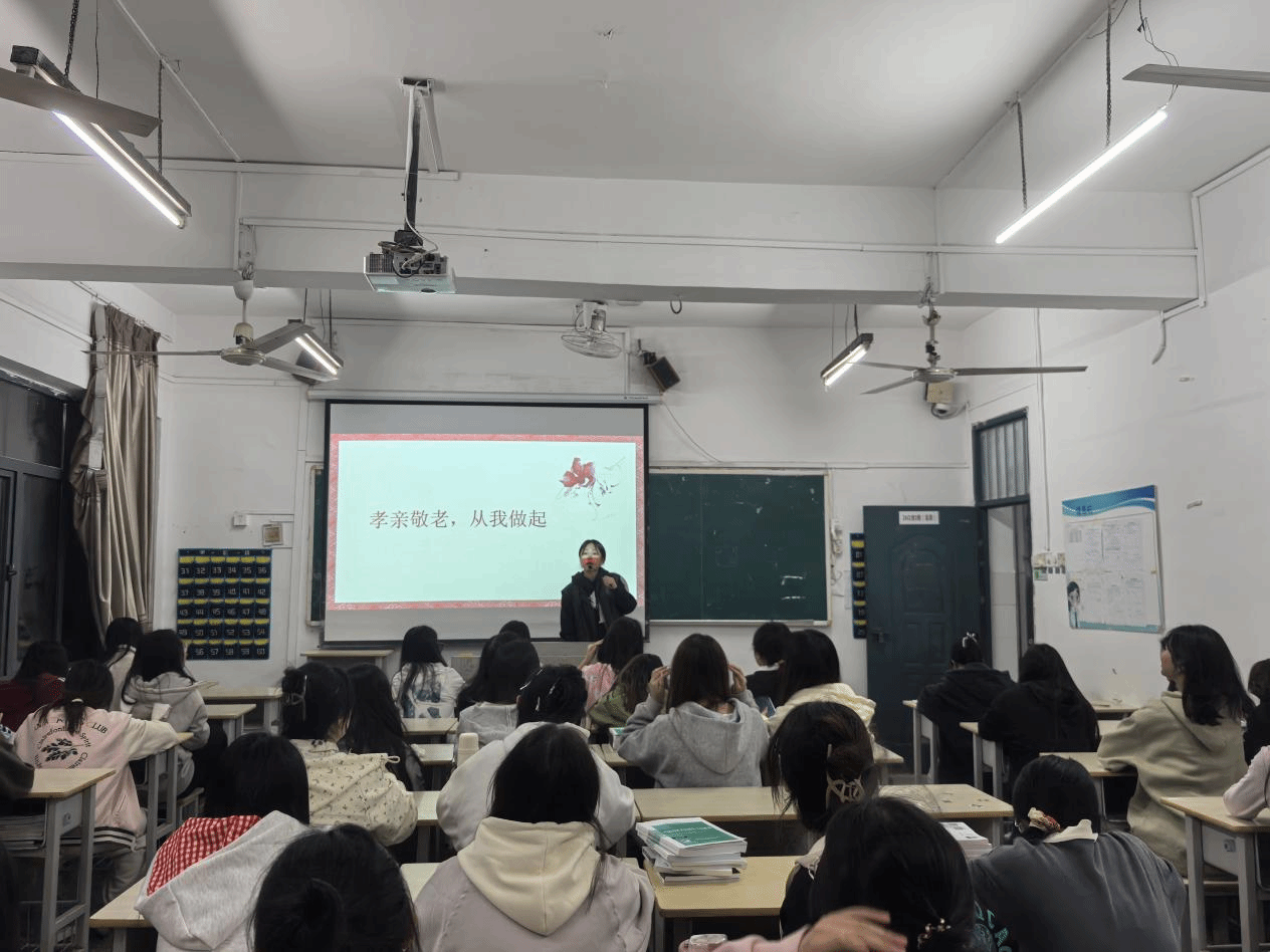 本次班会不仅是一次美德教育,更是一场情感唤醒与行动动员。孝亲敬老并非遥不可及,它蕴藏于一餐一饭、一句问候、一次陪伴的日常细节中。她希望同学们以此次班会为起点,将“孝”植于心、将“敬”落于行,从我做起、从小事做起,让这一传统美德在班级与生活中生根发芽,成为青春岁月中温暖而坚实的底色。