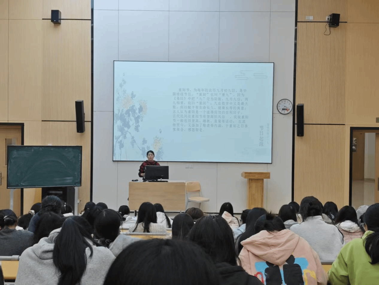 2024级中康1班、2班、3班辅导员肖瑶以重阳节为切入点,系统介绍了该节日的起源、演变与习俗,引导学生深入理解其中蕴含的“敬老崇孝”文化内涵。