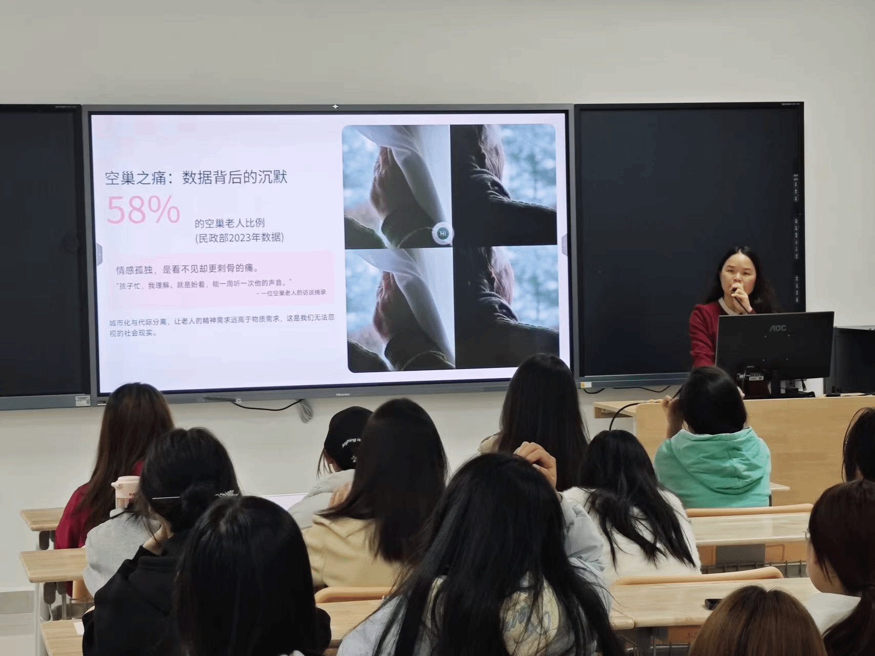 2025级老年保健1班辅导员高美凤旨在引导同学们深入理解孝亲敬老的传统内涵,打破“美德遥远”的认知误区,将“敬老”从理念转化为具体行动。主题班会通过“故事分享+视频感悟+行动倡议”三个环节逐步推进,同学们积极参与、真诚交流,现场氛围庄重温暖,实现了以理服人、以情动人的教育效果。